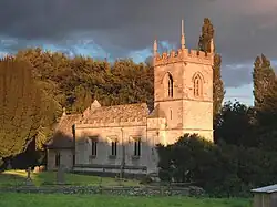 The village used to be clustered immediately around the parish church. Earthworks indicating the sites of buildings survive to the west, south and east of the churchyard.[11] However, the modern village is 220 yards (200 m) east of the church, contiguous with Middle Barton village in the Steeple Barton parish.[11] The agricultural lands of Steeple Barton and Westcott Barton were worked as a single field system. An open field system of farming prevailed in the two parishes until an inclosure act, the Westcott and Middle Barton Inclosure Act 1795 (35 Geo. 3. c. 19 Pr.), for their common lands, was implemented in 1796.[2] The main road between Bicester and Enstone traverses the parish from east to west. It was turnpiked in 1793 but was disturnpiked in 1876[2] and is now classified the B4030 road.