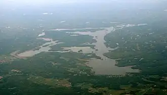 Before European settlement the lake was known as Wa-ba-lac by the local natives. In the Johnston Royal atlas (dated 1860) the lake was shown as Wabak or White Lake. The lake name is believed to be derived from the white marl deposits covering large portions of the lake substrate.[2] White Lake was created in 1845 when a dam on Waba Creek was constructed resulting in the water levels increasing in three previously small, interconnected waterbodies. The original White Lake Dam was built with the purpose of providing water storage for the operation of Stewart's sawmill at Waba, four kilometres (2.5 mi) downstream.[3] The dam was rebuilt in 1948 and in 1969, was purchased by the Ontario Ministry of Natural Resources and reconstructed again.[4]