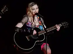 Madonna singing an acoustic "Who's That Girl" on one of the concerts of 2015―2016's Rebel Heart Tour.