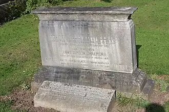 He died in London, 24 May 1882.[2] He is buried in the Grange Cemetery in south Edinburgh in the plot of his father-in-law, Thomas Chalmers (against the north wall).
