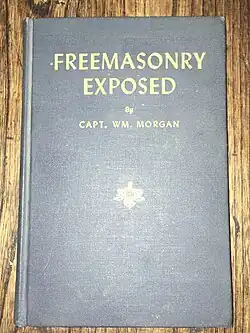 William Morgan (1774 – disappeared c. 1826) was a resident of Batavia, New York, whose disappearance and presumed murder in 1826 ignited a powerful movement against the Freemasons, a fraternal society that had become influential in the United States.[1] After Morgan announced his intention to publish a book exposing Freemasonry's secrets, he was arrested on trumped-up charges.[2] He disappeared soon after and was believed to have been kidnapped and killed by Masons from western New York.[3]