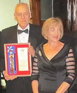 William Riefkohl to the left, with a plaque stating the 2010 Sigma convention was dedicated to him