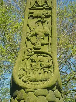 4. ^ "The Sculptured Cross at Gosforth", by the Rev. W. S. Calverley, printed in the Transactions of the Cumberland and Westmorland Antiquarian and Archaeological Society 1883 doi:10.5284/1064497