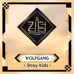 The pre-listening of "Wolfgang" for the Mnet's television show Kingdom: Legendary War's final competition song of 6-team contestants was unveiled after part 2 of the round 3 competition was finished on May 27, 2021.[1] The full song was released on May 28, 12:00 PM (KST), together with other 5 songs from 5 contestants.[2] Stray Kids ends up as a winner of the show.[3]