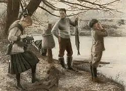 Bertha Wehnert-Beckmann was probably Germany's first professional female photographer. In 1843, she opened a studio in Leipzig together with her husband and ran the business herself after his death in 1847.[12] Emilie Bieber opened a daguerrotype studio in Hamburg in 1852. After a slow start, business picked up and she ran the studio until 1885 when she transferred it to her nephew.[13] In 1863, German photographer Emma Kirchner moved to Delft in Holland and opened her studio E. Kirchner & Co.[14]