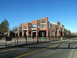 Day Square station had its platforms at ground level, with an elevated busway for buses and trackless trolleys located above the platforms. A loop for these vehicles extended over a parking lot south of the station.[6] The extension to Airport, Day Square, and Orient Heights opened on January 5, 1952, with further completion to Wonderland station in 1954.[1] The MTA began charging for parking at its stations, including Day Square, on November 2, 1953.[10][11]