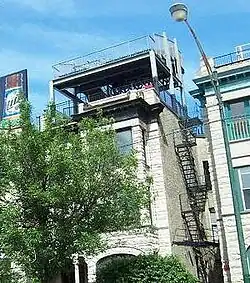 In 2002, the Cubs organization filed a lawsuit against the different facilities for copyright infringement. Since operators charge admission to use their amenities and sell licenses to view Major League Baseball, the Cubs asserted that the facilities were illegally using a copyrighted game and sued for royalties.[6] In 2004, 11 of the 13 roofs settled with the club out of court, agreeing to pay 17% of gross revenue in exchange for official endorsement.[7] The city also began investigating the structural integrity of the roofs, issuing citations to those in danger of collapse. With the Cubs and the neighbors reaching agreement, many of the facilities began to feature seating structures: some with bleachers, some with chair seats, and even one with a steel-girdered double deck of seats (see photo). The agreement was to last until 2023.[8]