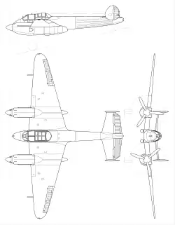 The Yak-2 was initially known as the Ya-22, in the Yakovlev OKB numbering sequence, before it was redesignated as the Yak-2 in 1941.[1] It was of mixed construction with wooden wings and center fuselage, duralumin forward fuselage, and steel tube framing in the rear fuselage with a wooden upper decking and fabric skin. The cockpit was at the very tip of the nose, but the navigator/gunner was in a compartment behind the trailing edge of the wing. The prototype was unarmed and no bomb shackles were fitted. It also lacked a radio and navigational equipment. It was, however, the fastest multi-engined aircraft in the Soviet Union, able to reach 567 km/h (352 mph) at 9,900 m (32,500 ft), not least because it lacked heavy military equipment.[2]
