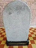 The 1413 stele was erected at Yongning Temple to commemorate its construction by Yishiha. The stele is 179 × 83 × 42 cm in dimensions,[4] and is inscribed on the front with an inscription in Chinese which extols the Yongle Emperor and recounts Yishiha's expedition. On the back of the stele are abbreviated versions of the Chinese inscription written in Mongolian and Jurchen. On one side of the stele, the Buddhist mantra Om mani padme hum is engraved vertically in four different scripts:[4][5]