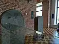 The Yongning Temple Stele (Chinese: 永寧寺碑) is a stele erected by the Chinese Ming dynasty in 1413 with a trilingual inscription to commemorate the founding of the Yongning Temple (永寧寺) in the Nurgan outpost, near the mouth of the Amur River, by the eunuch Yishiha. The location of the temple is the village of Tyr near Nikolayevsk-on-Amur in Russia. This stele is renowned both as the latest known example of a monumental inscription in the Jurchen script, and also for the inscription of the Buddhist mantra Om mani padme hum in four different scripts on its sides. A stele with a monolingual Chinese inscription, commemorating the repair of the temple by Yishiha, was erected in 1433. Both monuments are now held at the Arsenyev Museum in Vladivostok.