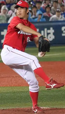 Yuichi Hisamoto (久本 祐一, Hisamoto Yūichi; born April 3, 1979 in Daitō, Osaka) is a Japanese professional baseball pitcher in Japan's Nippon Professional Baseball. He played for the Chunichi Dragons from 2002 to 2007 and from 2010 to 2012 and with the Hiroshima Toyo Carp in 2013, 2014, and 2016.
