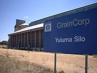 Yuluma is a rural community in the central part of the Riverina and a railway station on The Rock–Oaklands Railway line. The station is situated about 616 rail kilometres from Sydney. It is situated by road, about 7 kilometres (4.3 mi) south west of Boree Creek and 29 kilometres (18 mi) north east of Urana. The railway station was in operation between 1911 and 1975.[1]