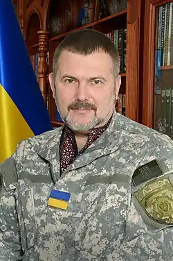 Yuriy Mykolayovych Bereza (Ukrainian: Юрій Миколайович Береза; born 8 February 1970)[1] is a Ukrainian politician and the commander of the Dnipro Battalion.[2][3]