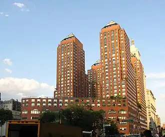 The Zeckendorf Towers, sometimes also called One Irving Place and One Union Square East, is a 345 ft-tall (105 m), 29-story, four-towered condominium complex on the eastern side of Union Square in Manhattan, New York City. Completed in 1987, the building is located on the former site of the bargain-priced department store S. Klein. Designed by architectural firm Davis, Brody & Associates, and named in honor of prominent American real estate developer William Zeckendorf, it was one of New York City's most important development projects of the 1980s.[1]