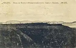 The village of Kabashchich was formed in 1865 on the site now occupied by modern Zelenodolsk. By 1890, 104 people lived in the village and sawmills began to operate nearby it. In 1897, the village was renamed as Paratsk or Paratsky Zaton, by which time it had become a place for repair and wintering of river ships sailing along the Volga. The backwaters of the shipyards would serve as the basis for the future factory named after Maxim Gorky. In 1928, Paratsk was reorganized into the working village of Zeleny Dol. On July 11, 1913, a railway bridge across the Volga was opened near the village, and a stations along this line was established in the village. In 1932, according to the Resolution of the All-Russian Central Executive Committee, Zeleny Dol received the status of a city and the name Zelenodolsk. In the period 1931-1932 three factories were built in the city and the area of housing increased by 24,000 m². Zelenodolsk was part of the Yudinsky region (Tat. Юдино районы) that was formed on August 4, 1938 from the western part of the abolished Kazan region. The administrative center of the district was located in the working village of Yudino (now part of Kazan).[11][6][7][12]