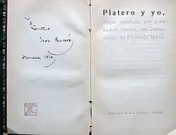 Dedication of Juan Ramon Jiménez to Zenobia